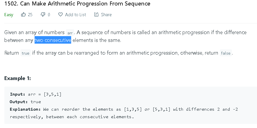 Can Make Arithmetic Progression From Sequence - LeetCode